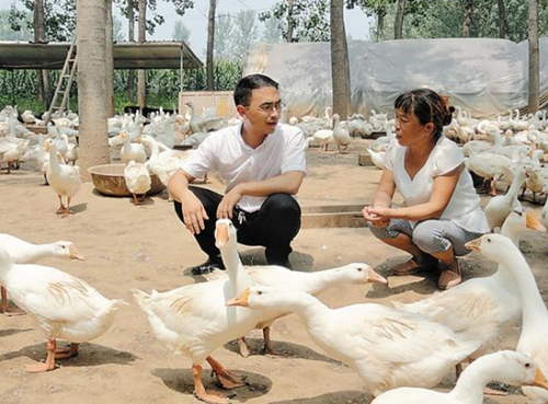 鄧城鎮扶貧干部幫貧困戶養鵝致富
