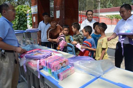 “我們這個小學是建校幾十年的老學校,很多桌凳都很破舊了。這不,剛剛開學,村里幫 扶企業就給俺送來了課桌凳、書包文具,電腦桌、檔案柜,現在國家扶貧政策就是好。你 看,這些學生都很高興,我們學生雖然不多一定要用心教學,以實際行動報答社會的關愛 ......”校長任海峰感激之情溢于言表。