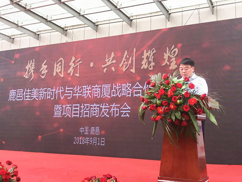 9月1日上午,佳美新時代與華聯(lián)商廈簽約暨招商推介會在鹿邑縣華聯(lián)商廈舉行。縣領(lǐng)導(dǎo)陸志杰、張勇、曹玉娟,原縣政協(xié)主席、縣慈善會領(lǐng)導(dǎo)鮑遠光出席簽約儀式。佳美新時代地處鹿邑商務(wù)中心區(qū)黃金商圈,由河南佳美商貿(mào)有限公司與華聯(lián)集團強強聯(lián)合,300多家知名企業(yè)商戶共襄盛舉,共同打造集休閑、娛樂、餐飲、體驗、購物、旅游等功能于一體的5萬平方米商業(yè)綜合體項目。