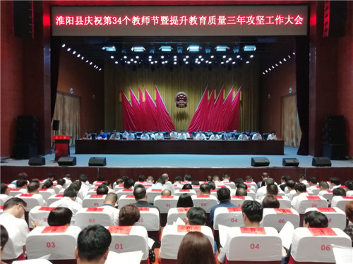 9月3日,在第34個教師節來臨之際,淮陽縣慶祝第34個教師節暨提升教育質量三年攻堅工作大會召開。會議主要目的是總結一年來教育工作取得的成績,對教育戰線涌現出的“優秀校長”“師德標兵”“優秀班主任”“優秀教師”進行表彰,并對全縣提升教育質量三年攻堅工作進行全面動員部署。
