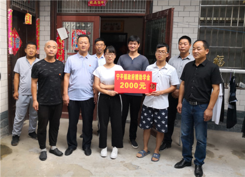 鄲城縣公安局駐王寨行政村第一書記朱金光帶領(lǐng)隊(duì)員邵濤、亞光,在走訪調(diào)查中得知這一情況,積極向鄲城縣慈善總會申請助學(xué)金2000元,向團(tuán)縣委申請希望工程圓夢行動助學(xué)金3000元,并向公安局黨委匯報(bào),局長陳鳳祥、政委趙紅建高度重視召開黨委會研究決定給王海洋家特批6000元助學(xué)金,寧平鎮(zhèn)黨委、鎮(zhèn)政府得到消息后,也第一時間作出響應(yīng),幫助困難孩子圓大學(xué)夢。