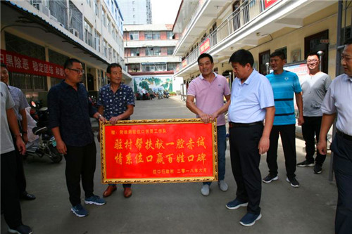 丁喜三代表財(cái)政局黨組對位口村民為財(cái)政局駐村工作隊(duì)贈送錦旗和牌匾表示感謝。稱縣財(cái)政局在縣委縣政府正確領(lǐng)導(dǎo)下,對張店鎮(zhèn)位口行政村進(jìn)行駐村幫扶,三年來的駐村工作取得了很大的成績,也存在很多不足,希望位口村廣大群眾對財(cái)政局的駐村扶貧工作多提寶貴意見,同時(shí)對新駐村隊(duì)員提出高的要求,財(cái)政局和位口村干部群眾攜手共同把脫貧攻堅(jiān)工作做好,確保不拖全縣的后腿,在奔小康的路上不落下一人。