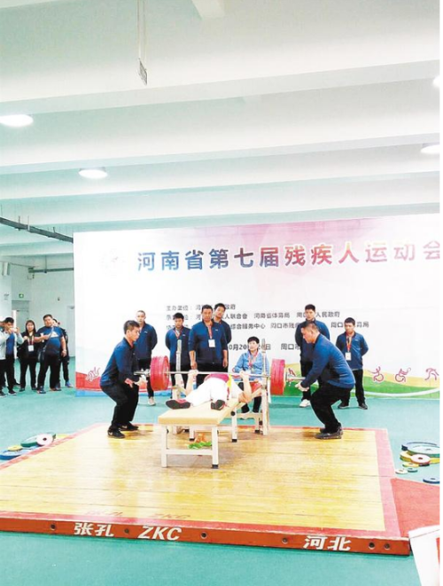 10月24日下午,在河南省第七屆殘疾人運動會男子舉重65公斤級比賽中,南陽選手范天增以185公斤的成績強勢奪冠,遠高于第二名信陽選手湯孝虎95公斤的成績。②8記者 張志新 攝