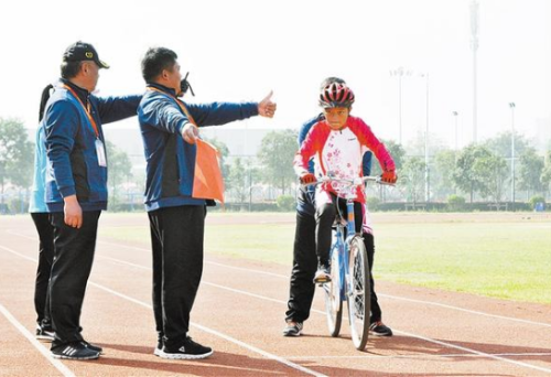 10月24日上午,河南省第七屆殘疾人運動會自行車比賽女子聽力組5公里個人計時賽進入決賽。周口小將葛雨露,在發令員、手語工作人員的示意下展開角逐。②8記者 梁照曾 攝