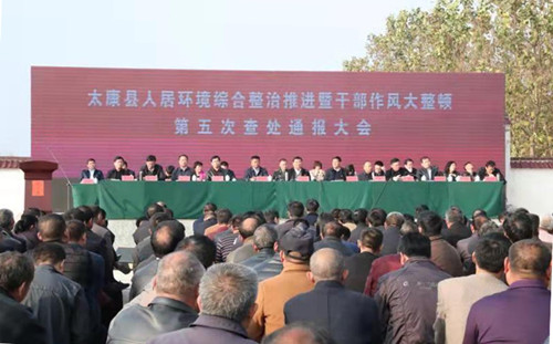 11月9日,太康縣人居環境綜合整治推進會暨干部作風整頓第五次查處通報大會在該縣城郊鄉池莊行政村召開。王國璽、李錫勇、王程清、張思民、王建林等縣四個班子領導、市脫貧攻堅第四督查巡查組組長李煒和縣副處級以上領導及該縣縣直、各鄉鎮負責人參加會議。會議由縣委副書記、政法委書記王程清主持。縣委書記王國璽指出,人居環境綜合整治是鄉村振興的基礎工程、是脫貧摘帽的形象工程、是環保攻堅的保障工程、是農村生活的清潔工程、是執政能力的標志工程,必須抓好抓實。
