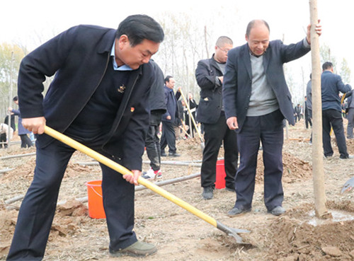 該縣高賢鄉小郭行政村,呈現出一片熱火朝天的勞動場面。王國璽、李錫勇、王程清、張思民等縣四個班子領導揮鍬鏟土,與廣大干部群眾一起投入到緊張的勞動中,扶正樹苗、揮鍬培土、提桶澆水,每道工序都做的認真細致、一絲不茍,大家合力種下大葉女貞等優質樹木。