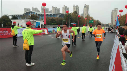 11月18日,在2018周口馬拉松暨善跑中國周口站現場,一個個身穿統一服裝的志愿者活躍在賽道之上,他們或給選手舉路線指示牌,或伸出大拇指給路過選手一個大大的“贊”,成為賽場內外一道靚麗的風景。