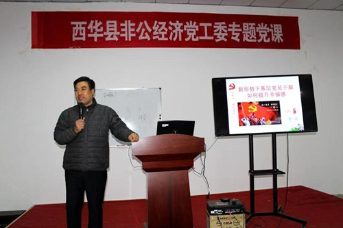 11月17日,西華縣非公黨工委邀請清華大學珠海教育中心EMBA國學講師徐一農先生,為全縣百余名非公企業黨員集中上了一堂生動的黨課。縣委組織部、縣非公黨工委有關領導、酷農航空、縣電商產業園、遠大鍋爐等40余家非公企業、個私協會黨支部參加了集中黨課。