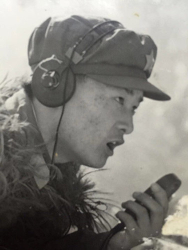 這時候,反撲的敵人越來越近了,蔣慶泉向指揮部的兩名話務戰士谷德泰和陸洪坤報告了這一情況。看著如潮水般逼近的敵人,蔣慶泉拼盡全力,沖著步話機嘶吼:“別廢話!向我所在的碉堡頂開炮!”。在陣地暗堡中,幸存的戰士緊緊圍在蔣慶泉身邊,以保護他向我炮兵指揮部通報目標的位置。