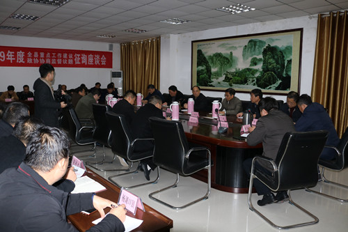 12月6日上午,鹿邑縣政協(xié)主席雷申主持召開(kāi)“2019年度全縣重點(diǎn)工作建議和縣政協(xié)協(xié)商監(jiān)督議題征詢座談會(huì)”。政協(xié)副主席丁顯輝、黨組副書記胡立柱,副主席李蘭明、宋克言等出席會(huì)議。全縣各鄉(xiāng)鎮(zhèn)、辦事處政協(xié)聯(lián)絡(luò)組長(zhǎng)參加會(huì)議,并分別圍繞“三大攻堅(jiān)戰(zhàn)”、農(nóng)村人居環(huán)境改善及產(chǎn)業(yè)發(fā)展、城市管理等民生問(wèn)題,積極進(jìn)行協(xié)商建言。政協(xié)機(jī)關(guān)副科級(jí)以上干部參加座談會(huì)。