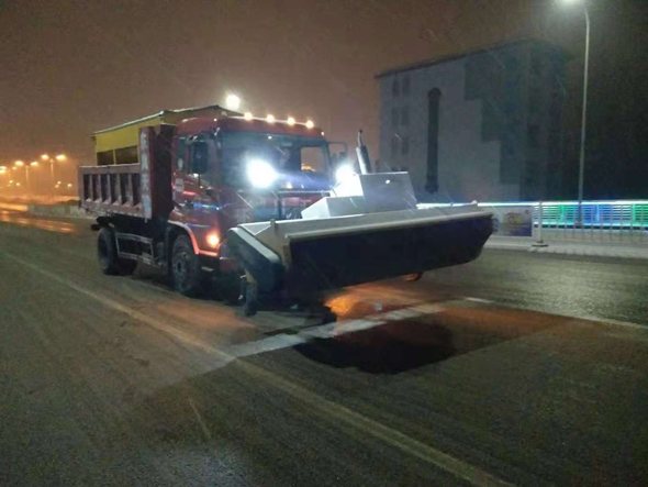12月11日凌晨1時許,在周口市區大慶路橋上,嚴寒低溫下,一輛融雪環衛作業車往返橋面拋撒融雪劑。據悉,為保障路面暢通和廣大市民安全出行,川匯區愛衛辦的工作人員加班加點,趕赴各自責任區域,連夜對中心城區主要路段進行消除積冰積雪工作。他們先后對中州大道橋等市區幾座橋梁的上下坡道、橋面及文昌大道、七一路、交通大道、中州大道、八一大道、大慶路、建設大道等主要路段的背陰易結冰路面進行了拋撒融雪劑作業,防止路面結冰。記者 彭慧 攝