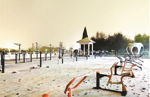 2018年冬天的第一場大雪,把周口市中心城區沙潁河風景區裝扮得清新雅致,別有一番風味?;ú?、綠植、雕塑、亭臺、環廊、步道乃至健身器材,在雪的映襯下,都顯得通透而有靈性,讓人欣喜非常。