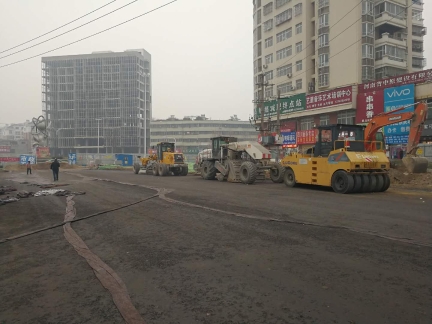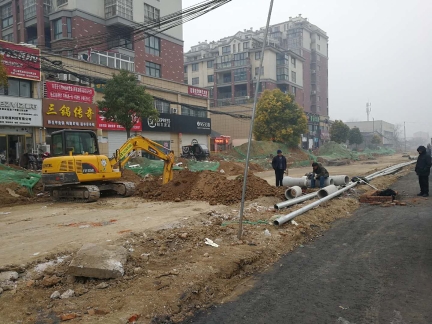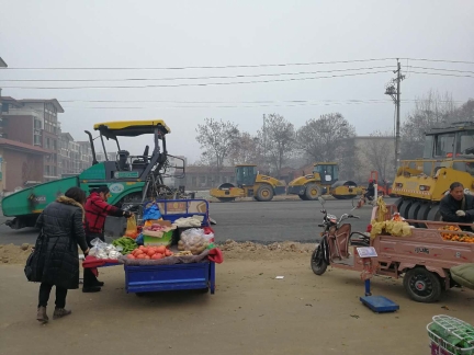 記者今日走訪漢陽(yáng)路中段(穎河路-建設(shè)路)看到,目前該路段機(jī)動(dòng)車(chē)道已鋪上黑色的混凝土物質(zhì),人行道則是壓實(shí)過(guò)的土路。壓路機(jī)等設(shè)備停靠在道路兩頭,并未啟動(dòng),有兩臺(tái)挖掘機(jī)及數(shù)十名工人在人行道上,鋪設(shè)下水道。施工路段內(nèi),有不少菜販在沿街叫賣(mài)。