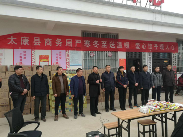 12月21日下午,冬至前夕,太康縣副縣長喬偉、縣商務局局長李曉紅,清集鎮黨委書記吳文靜,帶著對貧困群眾的關心、關愛,到太康縣清集鎮張子影行政村、桂崗行政村開展嚴寒冬至送溫暖,愛心餃子暖人心扶貧慰問活動。