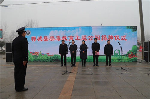 12月21日,鄲城縣舉行禁毒主題公園揭牌儀式,縣委書記羅文閣,縣委副書記、政法委書記、縣禁毒委主任崔衛國,縣人大常委會主任李建軍,縣政協主席姜永來等出席儀式并為禁毒主題公園揭牌。