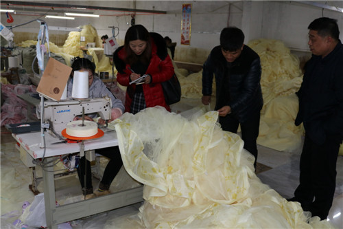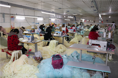 “我以前哪里都沒去過,別說干活掙錢了,公司給我們在家里備了縫紉機,現在可以把活拿到家里做,不出家門,就可以每月掙2000多元,并且常年都有活干。”和王美不一樣的是,貧困戶孫艷紅是因為丈夫去世,留下了她和一個智障兒子相依為命,僅僅依靠兩畝地及親戚鄰居的幫助生活,日子過的很是困苦。在金凱盛家紡“扶貧車間”的幫扶下,孫艷紅如今也順利地摘掉了脫貧帽。當天在車間里看到她時,她正準備拿著需要加工縫制的蚊帳,在家邊干活邊照看兒子。