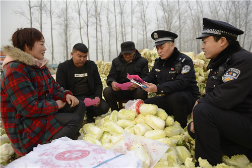歲末年初正是電信詐騙、入室盜竊等各類侵財案件高發(fā)期。為提高群眾的治安防范意識,連日來,扶溝縣公安局呂潭派出所民警來到田間地頭,為農(nóng)戶講解治安防范知識,幫助農(nóng)戶提高識別電信詐騙技能。圖為12月25日,民警正在為菜農(nóng)解答電信詐騙防范疑難問題。