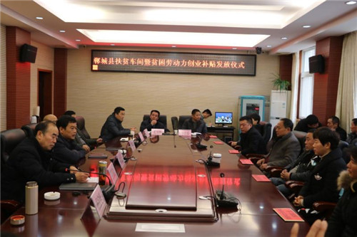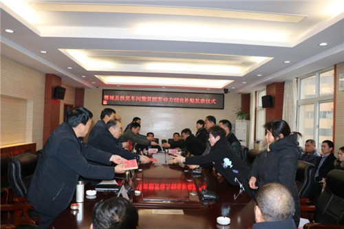 12月27日上午9點,鄲城縣人社局舉行鄲城縣扶貧車間暨貧困勞動力創業補貼發放儀式,通過前期政策宣傳、材料申報、實體查看,為符合條件的扶貧車間22家,分別發放最高10000元的創業服務補貼,合計218300元;貧困勞動力創業者5名,分別發放初始創業補貼5000元,合計25000元。