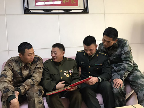 柳東坡、劉威、崔二偉3名年輕軍官聽完老英雄的講述后心靈受到極大震撼,一度落下激動地淚花。他們向海水干匯報了各自在部隊立功受獎的情況。“強軍先鋒”柳東坡現為80集團軍某旅副營長,在斯洛伐克國際特種兵比武、中俄聯演以及全軍特種兵比武中表現優異,先后榮立一等功、二等功各一次,三等功3次;“天山兵王”劉威現任新疆軍區某團副連長,在國際軍事比賽、軍區偵察兵比武中脫穎而出、成績顯著,入伍來先后榮立一等功、二等功各一次,三等功2次;“狙擊神槍手”崔二偉曾被總參謀部表彰為“全軍優秀狙擊手”,先后榮立一等功、二等功各一次。