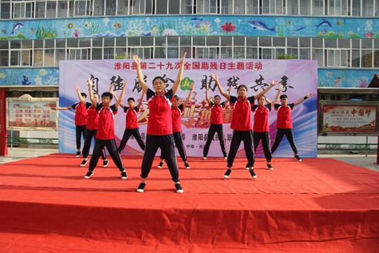 活動儀式上,縣特殊教育學校學生和縣音樂家協會文藝志愿者分別為觀眾表演了精彩的文藝節目??h特殊教育學校的學生首先表演了舞蹈《海草舞》,文藝志愿者周紅春演唱了歌曲《愛的奉獻》、《天南地北淮陽人》、李泉稼小朋友演唱了豫劇《洼洼地里好莊稼》,淮陽特殊教育學校學生表演了節目《感恩的心》。精彩的表演贏得了現場觀眾的陣陣掌聲。