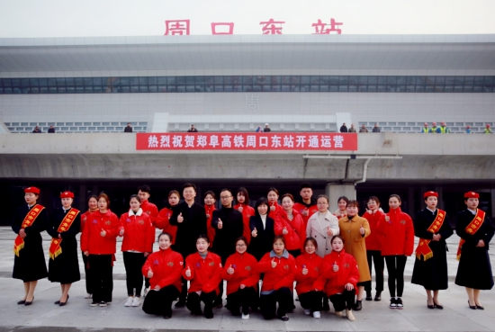 為慶祝鄭阜高鐵首發,同時給乘客營造一個溫馨舒適的乘車環境,提升城市溫度,12月1日,在團市委的組織下,來自周口職業技術學院的80名青年志愿者聚集在周口東站,開展志愿服務活動。記者在現場看到,志愿者身穿統一服裝,分布在站前廣場、售票廳、進站口、候車廳的各個角落,他們有的幫助乘客取票;有的引導乘客,幫助乘客進站;有的則幫助車站工作人員分散客流量等。志愿者們積極熱情的工作態度,得到了廣大乘客的好評。