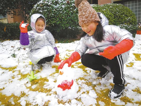 1月7日,在周口中心城區一小區內,孩子們或打雪仗,或堆雪人,盡情享受著初雪帶來的歡樂。 記者 孫安平 攝