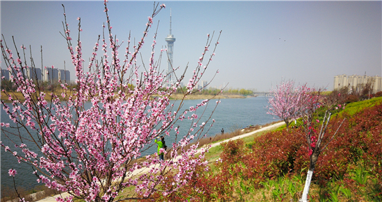 3月22日,周口市沙潁河碧波蕩漾,兩岸處處綠樹環繞,花兒姹紫嫣紅,兩岸綠影婆娑,一幅五彩繽紛春景的悅目畫面。