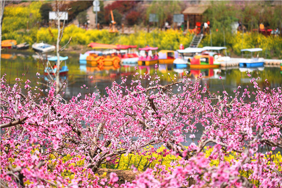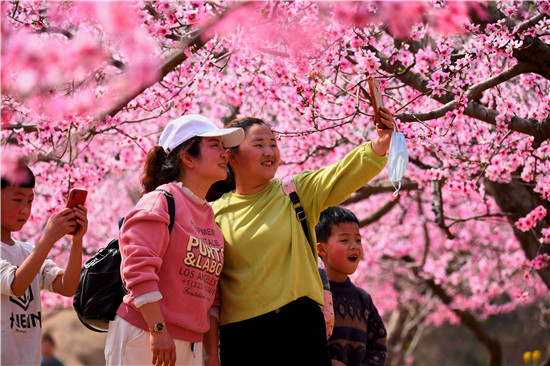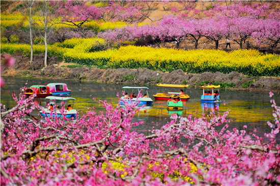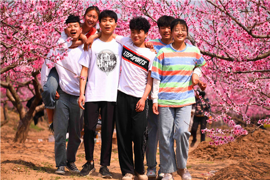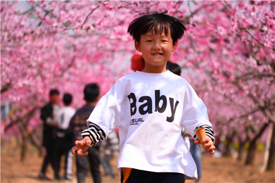 而在萬畝桃花深處,賞花的人們也是醉不知歸。大人孩子們神采飛揚,追逐賞花,探幽覓芳,玩得很嗨!還有一個時尚的人們,在桃花深處玩抖音、玩直播、拍視頻,與天下網友共賞花海之美。