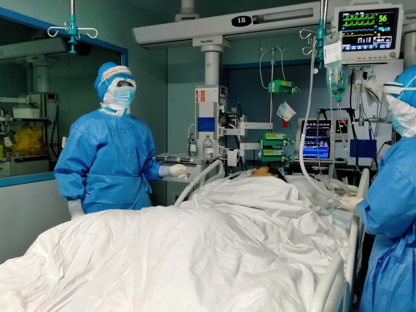 高艷艷說,除了多穿一層防護服,其他的跟平時的工作差不多。不同的地方,主要體現為兩點,一就是從接班到交班,所做的所有工作都多了一份被感染的風險。二就是救治存在的難點多、棘手的問題多、突發事件比較多,比如說:新冠肺炎患者發展到危重期,特別是病程較長的病人,肺大多爛掉了,多數病人上有呼吸機,這樣的病人極易出現氣胸。有一次值班期間,一位56歲的男性患者,突發氧分壓下降、煩躁、血壓下降、出汗,急查胸片證實氣胸,緊急給予了胸腔穿刺閉式引流,病人癥狀才得以緩解。氣胸雖然在臨床上很常見,但對于新冠肺炎病人卻如同雪上加霜,不緊急處理病人很快就會死掉。每一個搶救的場面如同一場激烈的戰場,而戰斗隨時會打響,但你卻根本無法預測哪一次戰斗會在哪一個時刻打響,所以值班時每位醫師都會慣性地緊盯著每個數值、各個參數……
