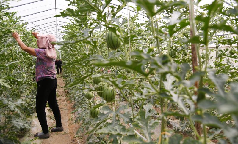 西華遲營鄉百農園產業扶貧基地內的西瓜