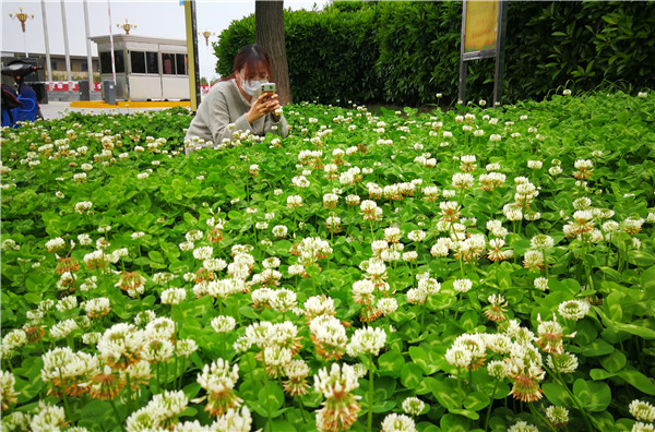 4月20日,在文昌大道道路綠化帶上,市政工人正在為栽種的花卉綠植補充水分。入春以來,我市城區一直在進行美化綠化,現在各個街道逐漸顯現出絢麗身姿。市民走在市區的每個街道都能看到各色花卉、綠植,很是養眼。