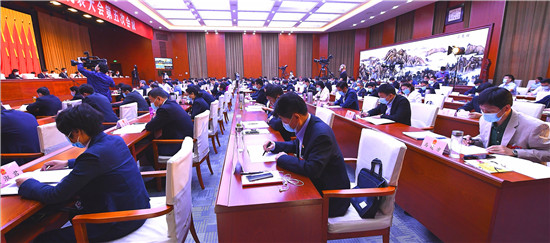5月12日上午,周口市四屆人大五次會議隆重開幕,參加會議的市人大代表認真聽取政府工作報告。