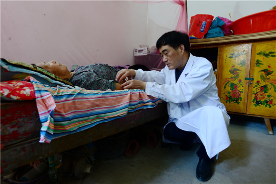 李樓鄉(xiāng)位張行政村72歲的貧困戶張振廷腦中風(fēng)多年,在大醫(yī)院治療一個月后,留有偏癱后遺癥臥床不起;李莊行政村80歲的貧困戶李體榮也是此癥,因無錢治療,二人均回家“等死”。柴萬靈作為簽約家庭醫(yī)生,就在他們家中設(shè)立家庭病床,每周一、三、五到老張家,二、四、六到老李家,給他們采用中醫(yī)針灸、按摩,并為其煎服偏癱復(fù)原湯,兩位老人都是半年左右能拄拐下地。