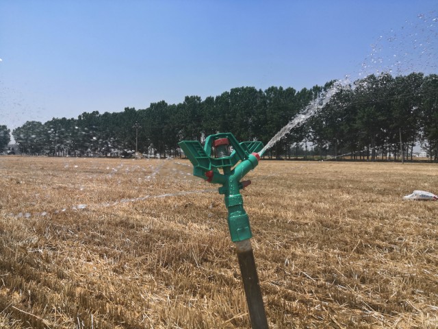 6月1日上午,西華縣東夏亭鎮仉莊村的一塊田地里,村民展元廠正在澆水。麥子已經收完,夏種正當其時,但是目前土壤墑情不好,不澆水就沒法播種。