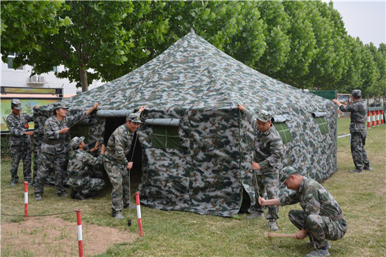 在這些民兵當中,擔負醫療救護的綜合勤務排更是不簡單。他們是來自周口長城醫院的醫護人員,在今年的抗疫戰中,他們充分發揮基層黨員民兵作用,無論白天黑夜,冒著雨雪嚴寒,在抗疫一線的卡點上都留下了他們迷彩身影。趙軍濤是來該醫院的醫護人員,同時也是一名退伍老兵,他說,新時代的強軍戰歌已經奏響,要以此次集訓為契機,不斷強化練兵備戰的緊迫意識、危機意識,以飽滿的政治熱情投入到緊張的訓練中,用優異成績為川匯區的后備力量建設增光添彩。