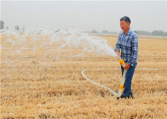 6月6日,沈丘縣周營鎮農民正忙著抗旱“造墑”、“補墑”澆水,期待奪取秋糧豐收。 近期來,由于連續多日高溫無雨,土壤墑情差,無法播種秋作物。針對當下嚴重的旱情,沈丘縣掀起“雙抗旱”(抗旱保苗、抗旱種秋)高潮。目前,該縣日出動勞力1.8萬余人,出動各類噴灌機械26000多臺(套),力保農田播種的玉米出苗。