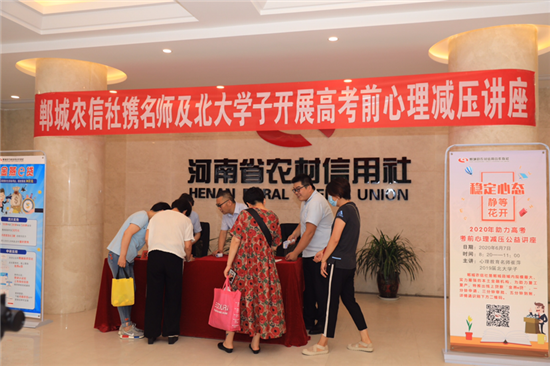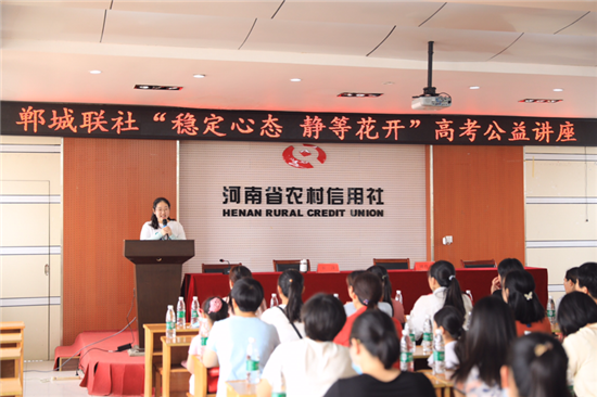為更好地幫助考生家長進行考前輔導,為廣大考生及家長打造健康、穩定、和諧的心理狀態,當日,鄲城農信社組織舉辦了“穩定心態、靜等花開”高考公益講座,為教育事業發展貢獻農信人的一份力量。