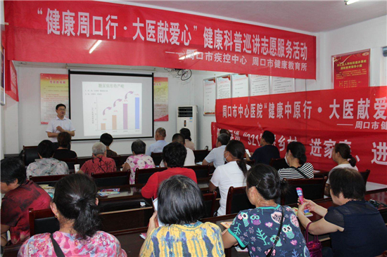 6月11日下午,周口市中心醫(yī)院內(nèi)分泌科主任楊東輝、健康促進辦公室主任范桂麗帶領(lǐng)健康巡講志愿服務隊來到慶豐社區(qū),為廣大居民開展“糖尿病如何科學防治”科普講座。