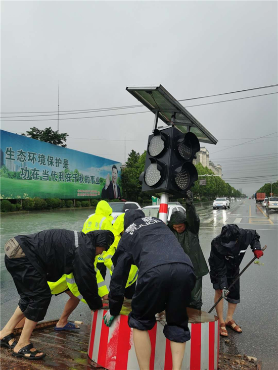 當天上午,周口市公安局副局長張新奇、市交警支隊支隊長馬清臣等冒雨深入一線巡查路況,指導一線民警保暢通。目前,城區交警直屬各大隊交警(輔警)全員上崗,全力投入到搶險救災行動中,力保廣大群眾的安全出行。