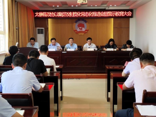8月11日,太康縣政協召開深化以案促改制度化常態化推進會暨警示教育會??h政協主席、黨組書記王建林,縣政協副主席丁明禮、劉玲、王永剛、劉鳳芹及縣政協機關全體黨員干部參加了會議??h紀委監委指導組親臨指導。