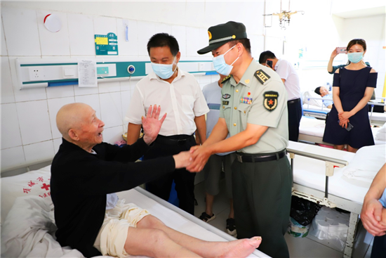 抗戰老兵是中國反法西斯戰爭的活化石,是我們中華民族的財富和瑰寶。抗戰勝利紀念日前夕的9月1日上午,項城市人武部部長矯百成在市退役軍人事務局牛新中局長等人的陪同下,一起走進項城市衛生學校的病房,看望目前項城僅健在的94歲高齡抗戰老兵王建義。
