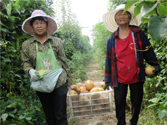 據家庭果樹農場主肖紅偉介紹,這片果園面積260余畝,今年進入盛果期,訂單產量達20余萬公斤。采取“黨支部+基地+合作社+貧困戶”經營管理模式,帶動當地貧困戶果園季節性務工就業達26人,人均年工薪收入達1.3萬余元,使他們持續增收不返貧,鞏固脫貧成效,助力鄉村振興。