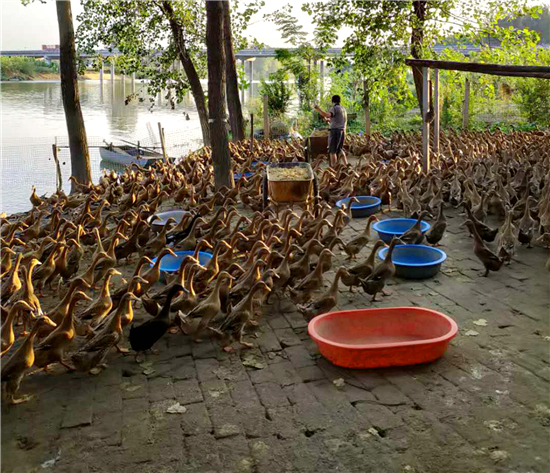 為了擴大變蛋原料來源,她與當地及外地多家養雞企業簽訂訂單協議,滿足自己加工變蛋需要。為了滿足鴨蛋貨源,她在潁河灣一個支流處新建一個養鴨基地,目前養鴨5000余只,日產鴨蛋5000枚,基本滿足當前加工咸鴨蛋需要。
