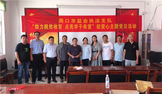 金秋送爽,碩果累累。9月11日,市鹽業執法支隊機關第一、第二黨支部部分黨員在支部書記趙軍、邵莉帶領下,赴商水鄧城許村開展“助力脫貧攻堅點亮學子希望”主題黨日活動。