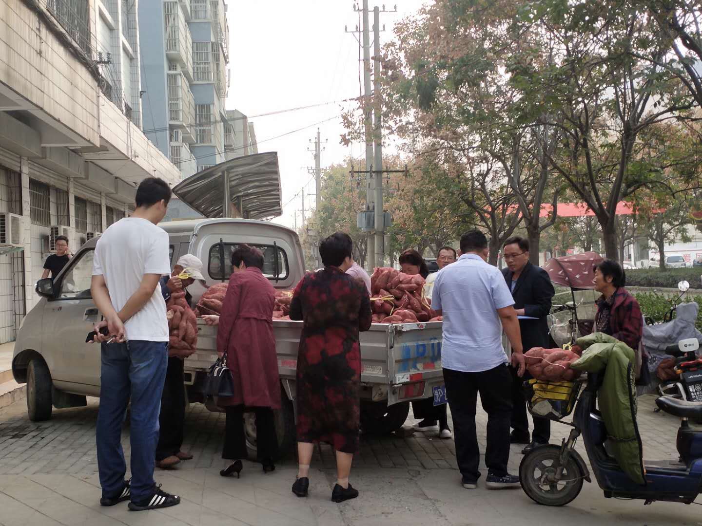 9月30日上午7時許,商水縣衛健委機關大門口,一輛裝滿紅薯的小型貨車緩緩停下。早已在此等候多時的扶貧干部---縣衛健委辦公室副主任尹慶華,急忙跑上前去,和跳下車的固墻鎮趙莊村貧困戶趙小牛和老伴打招呼,“老趙,你們來啦!把車停在路邊,我們馬上開張賣紅薯!”