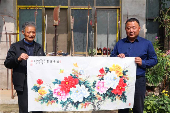 慰問結(jié)束后,書法家一行走進火王村委會,現(xiàn)場揮毫潑墨為群眾創(chuàng)作并贈送書法作品。縣書協(xié)主席團成員韓文甫、岳新華、李曉杰、張永利、孫海波、牛振林、張占領(lǐng)等人的書法作品受到群眾的熱烈歡迎。②8