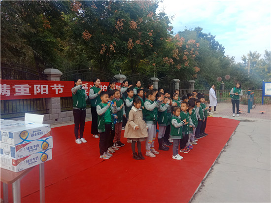 來到周口市老年護(hù)理院之后,學(xué)生們在老師的有序組織和家長們大手牽小手的幫助下,給那里的爺爺奶奶們送去了節(jié)日的祝福。祝愿爺爺奶奶身體健康,生活快樂!同時為爺爺奶奶表演了自編自導(dǎo)的節(jié)目。孩子們的有趣表演博得老人們開心開懷,并給以陣陣掌聲。