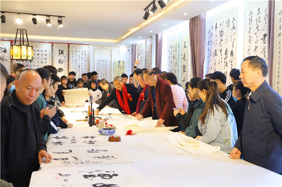 10月15日,重陽節。中國書法之鄉鄲城縣書協主席巴云山和資深書法家張樹銀、杜長青、崔傳明等人一道,在該縣八斗文化藝術中心舉行揮毫慶重陽的義寫活動。許多老藝術家和年輕學生歡聚一堂,過了一個別樣的重陽節。