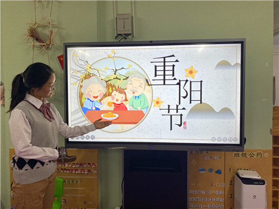在幼兒園班級活動中,教師通過圖片和視頻等幼兒喜聞樂見的形式,讓幼兒了解重陽節的習俗,明白了重陽節的意義。孩子們還用彩紙、水彩等為爺爺奶奶制作了賀卡和禮物,表達自己對老人的愛。