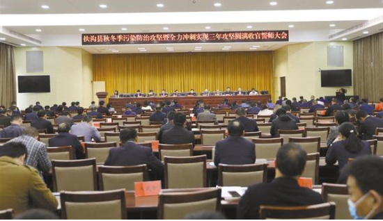 本報訊 (記者 李一) 10月22日,扶溝召開秋冬季污染防治攻堅暨全力沖刺實現三年攻堅圓滿收官誓師大會(如圖),分析形勢,聚焦短板,部署具體工作任務,動員全縣上下扛牢責任、堅定信心,以“亮劍”精神和不破樓蘭終不還的韌勁,堅決打贏污染防治攻堅戰??h領導張穎波、耿黨恩、姜永來、張建中、李明朗、王霄靈、趙紅亮、曹來凌、任松奎、張禹等出席會議。縣委各部委辦常務副職、縣直各單位主要負責人、各鄉鎮(辦)黨政正職參加會議。